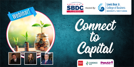 Presenters: Kelly Massey, Regional Director, Florida SBDC at UWF; Vitalii Pysarenko, Senior Small Business Banking Relationship Manager, Wells Fargo; Patricia Parker, Vice President, Commercial Lender, Cadence Bank; Dave Gooch, Vice President, Business Lending, Pen Air Credit Union